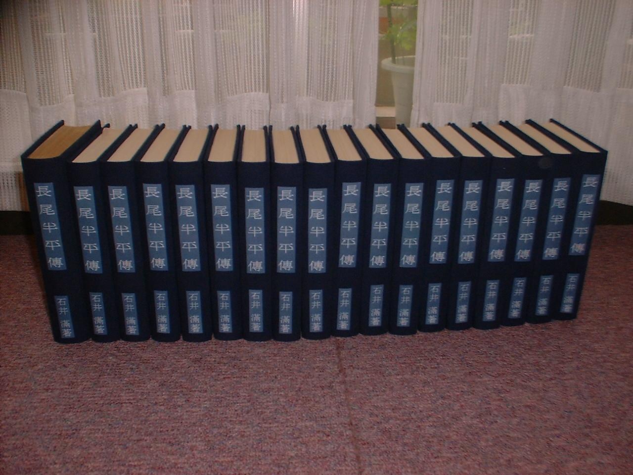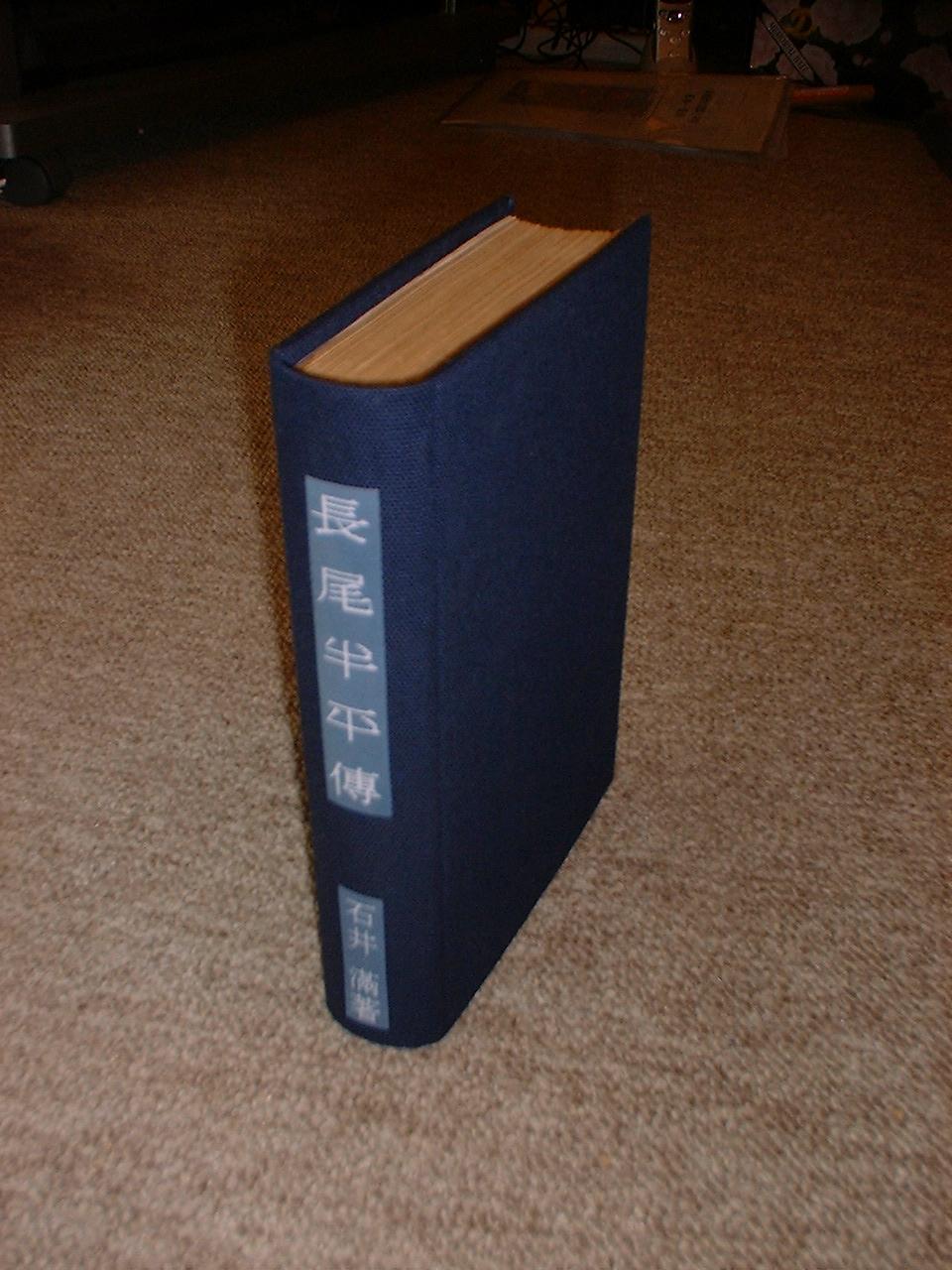 新たに糸で綴じ直し、再製本する。背部分に題字「長尾半平伝、石井満著」を転写