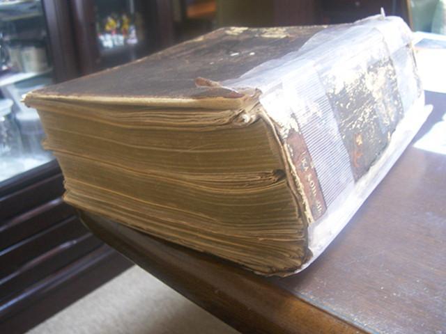 使うという要請であったので、背表紙のみ類似の色の皮革で新たに作成し、オリジナルの